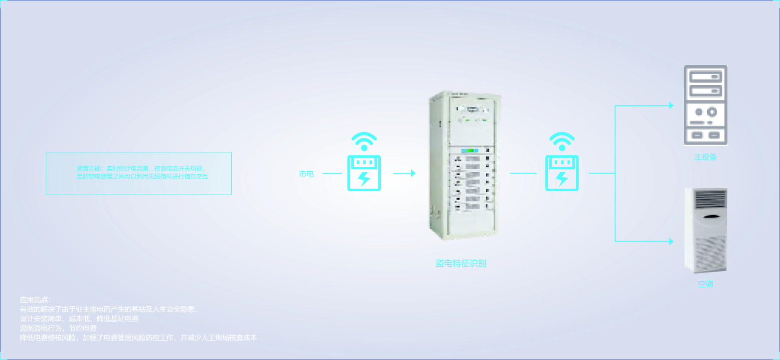 防窃原理:利用基站不同点的电流变化,通过特征算法,识别盗电行为。